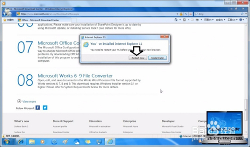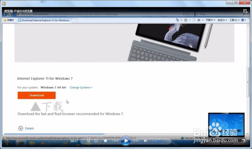 原装Windows 7 旗舰版安装的浏览器是IE8,打开网页会有提示不能使用,需要升级。
