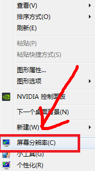 在电脑桌面的空白处,点击鼠标右键,选择【屏幕分辨率】,点击。