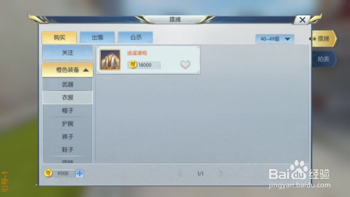 我们以购买橙装中的衣服为例,点击橙装,然后点击衣服,就出现衣服装备,如图所示