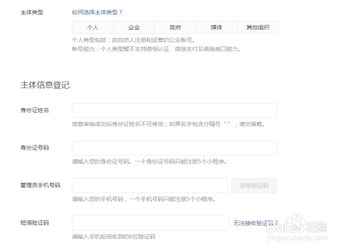 选择主体类型,输入完注册信息,如图
