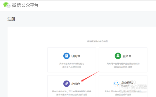 点击小程序,进入到小程序注册页面,如图