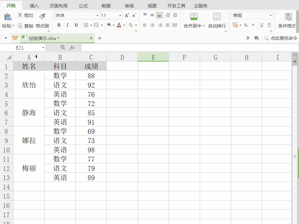 ①复制已有的合并单元格;