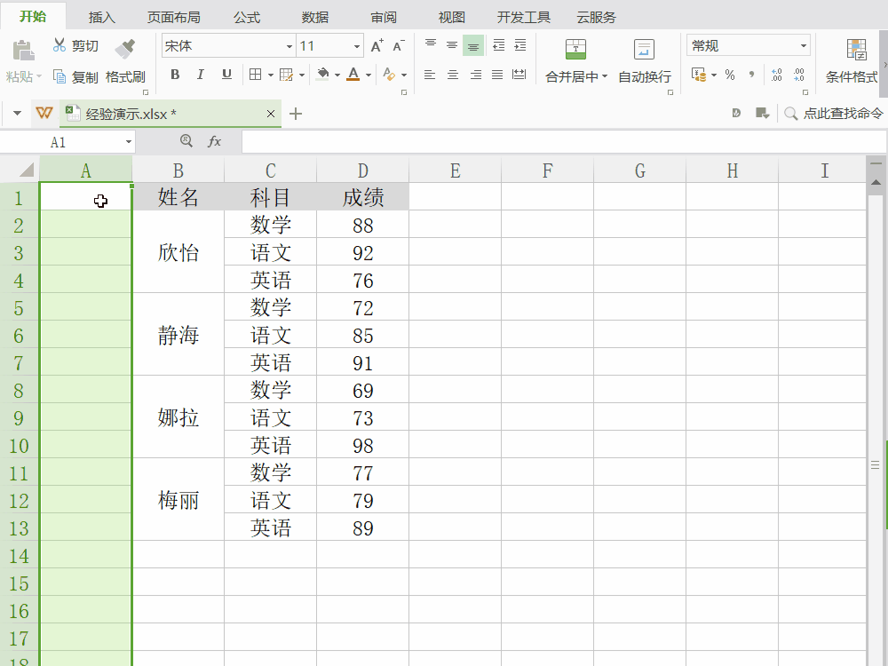 “编号”列格式化成合并的单元格。