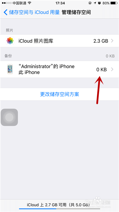 删除备份之后,返回到上一个界面,我们就可以看到上面备份的占用为0kb了。