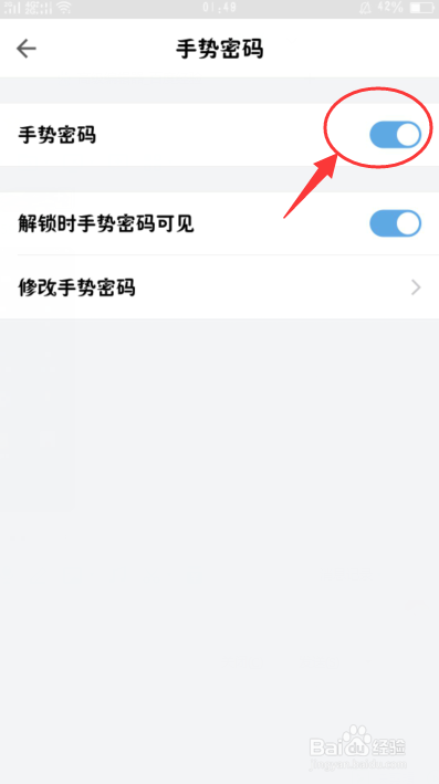 把【手势密码】打开后,我们退出邮箱再次进入就需要密码进入了
