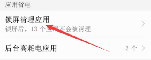 随后在弹出的界面里面找到应用省电这个设置,点击锁屏清理应用。