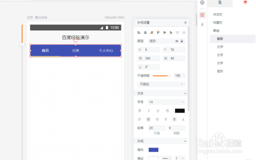 添加导航栏。从左侧的功能栏里找到导航栏,把它拖到制定位置。