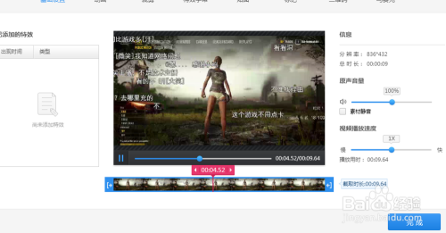 点击播放刚才录取的视频,然后可以根据需要添加字体、特效、马赛克之类的。