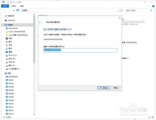 在网络位置内输入,NAS网络位置;格式为\\NAS\文件夹名,点击下一步