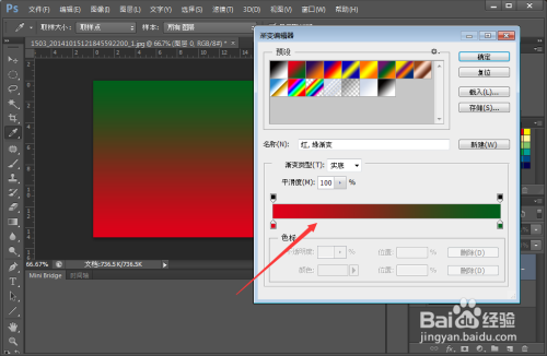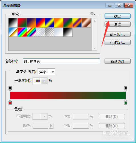 在渐变对话框中点击渐变右侧的框