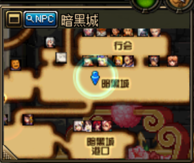 进入游戏后,我们找到艾丽娅npc,她的位置在暗黑城中,可以看地图截图显示。