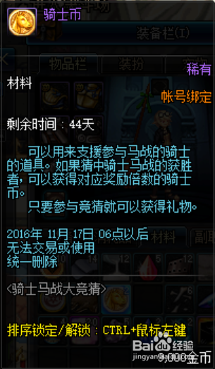 购买后,我们可以在道具栏中的材料标签中找到骑士币。