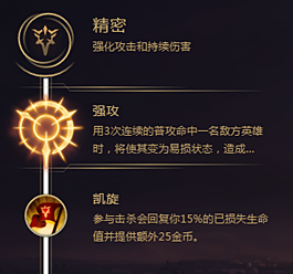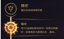 精密系的基石符文选择的是“强攻”,战争女神本身就是靠平A打出伤害的,强攻的三次后爆发的伤害非常适合战争女神,配合W技能会打出不俗的爆发伤害。
