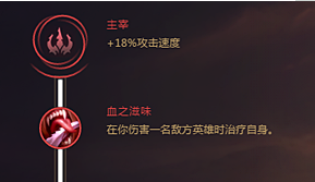 主宰系的第一个基础符文选择的是“血之滋味”,这会让战争女神在伤害敌方英雄后获得回血,增强了线上的消耗能力和打团的恢复能力。