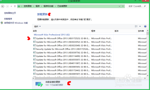 这个时候就可以看到本电脑中安装的所有更新,在底部显示系统更新的数目,主体部分显示更新的名称、类型以及时间。