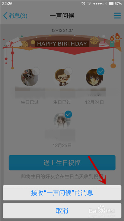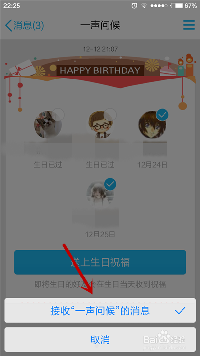 点击之后,后面的图标关闭,这就表明我们取消接收好友生日提醒了。