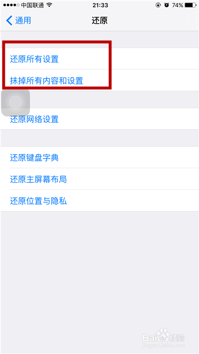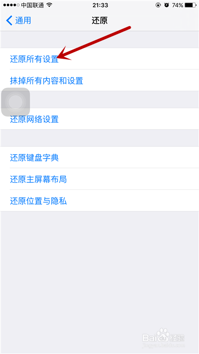 第一项就是还原所有设置,这个是我们之前对于手机的各项操作的一个还原。