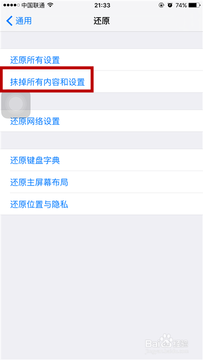 如果想要将你所有的内容也全部统统的抹掉,那么我们就选择第二个,也就是抹掉所有内容和设置。