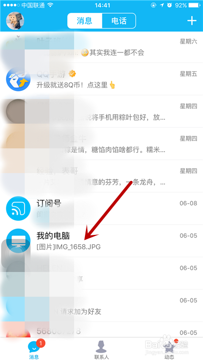 我们是通过手机上的QQ和电脑上的QQ相连,然后从而达到将图片上传这样一个目的的,首先我们需要做的就是打开自己的手机QQ,在里面找到一个叫做我的电脑的选项,通过这个我们可以上传图片。