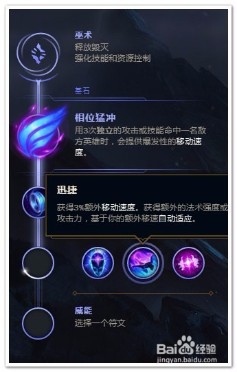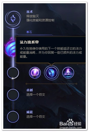 选择“巫术”作为“主系符文”(强化技能和资源控制)。