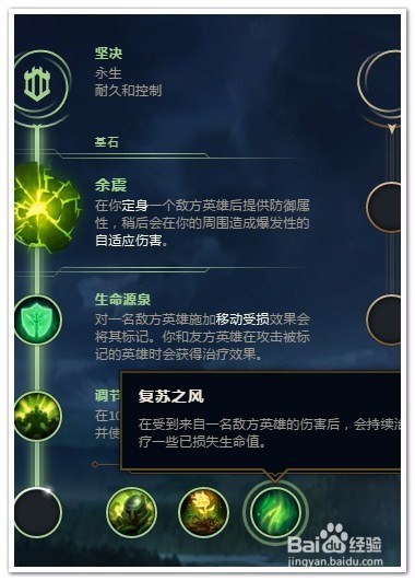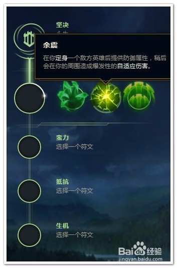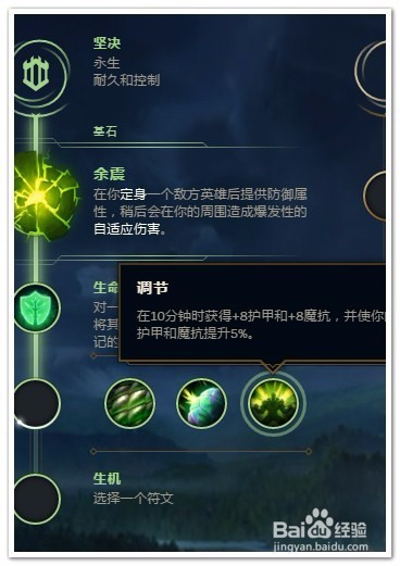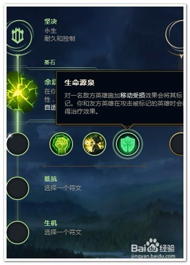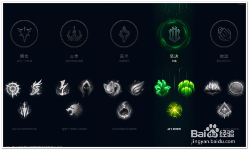 选择“坚决”作为“主系符文”(耐久和控制)。