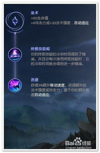 选择“巫术”作为“副系符文”(强化技能和资源控制)。副系符文1里选择“终极技能帽”,猪妹打团时非常依赖大招开团,减大招CD;副系符文2里选择“迅捷”提高猪妹移动能力,提高刷野效率。