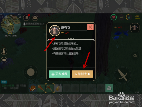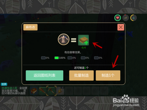 之后我们可以看到用4个麻布,即可制作麻布衣,我们集齐麻布后点击"制作“即可,如图所示。