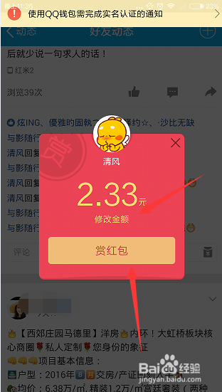 点击这个红包,系统自己会随机跳出来一个金额的红包,可以点击发红包,也可以对这个数额进行修改。