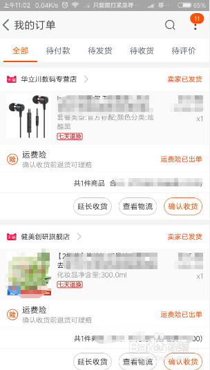 然后可以根需要来操作,如‘延长收货、查看物流、确认收货’等。