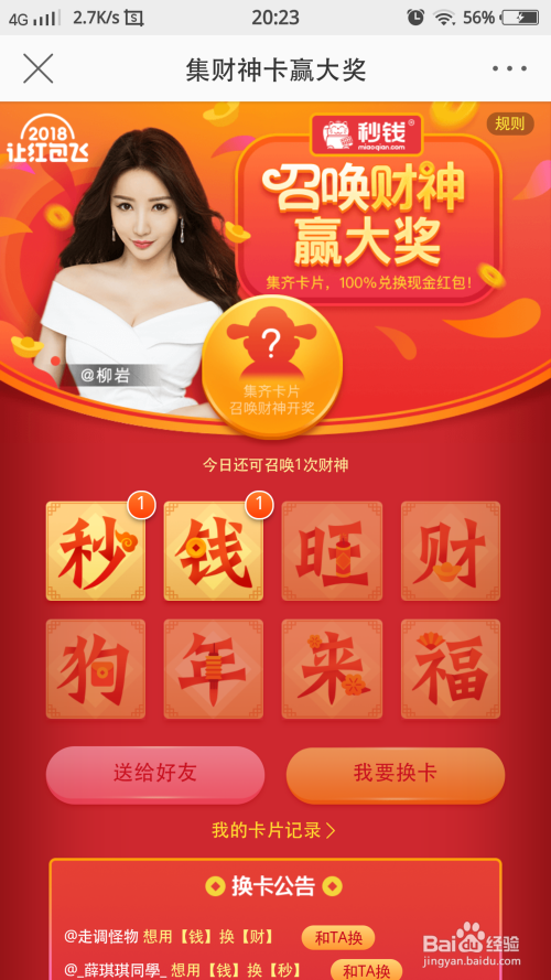 最后就是财神卡了,可以通过第二个步骤的页面进入。完成相应的任务就可以获得财神卡(向下拉就可以看到任务了),还可以交换财神卡不懂得私聊小编。