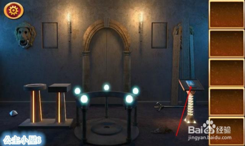 点击收取左边地上的钻石和右边地上的权杖,将权杖放置到灯中间的位置,将钻石安放到权杖上,点亮权杖。