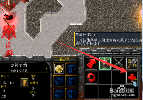 在去杀鸡之前,点击英雄,如下图,先学学技能。