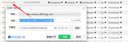 左侧是MCForge的版本,一一对应游戏版本,我们这里以1.7.10版本为例,已经现在整合包大多都是1.7.10的,好像也有1.10.2的了。你们可以按照你们的实际需要来下载对应的版本。