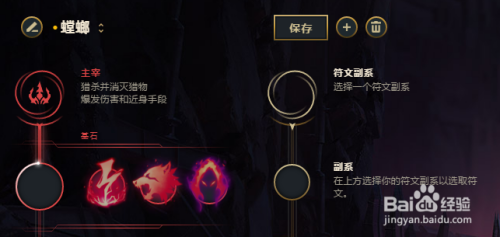 主系选择的是大部分刺客首选的‘主宰’系为主系,所以创建新符文的时候自然选择的是‘主宰’之后再进行符文的搭配;