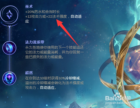 副系符文带的是巫术系,然后点出法力流系带和超然。