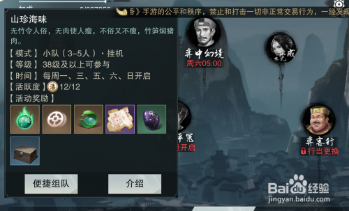 第一步,点击右上角活动按钮,点击山珍海味,自动寻路去接取任务。