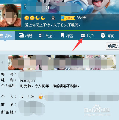 然后,打开个人资料。然后找到上方账户字样,点击打开