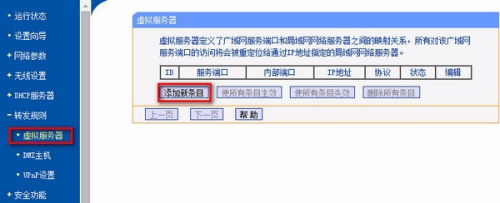 登录路由器管理界面,点击转发规则----虚拟服肋器,如下图: