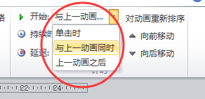 点击选定一组文字,可以看到右上角页面有:该动画是单击鼠标才作用,还是在上一动画之后,还是与上一动画同时