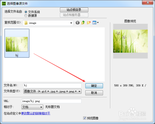 在选择图像源文件对话框里,选择要设定的背景图片,然后点击确定,如下图所示。