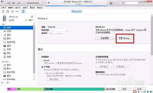 下载好固件之后,直接点击itunes软件里的恢复iphone选项,点击的时候按住shift键,然后再点击恢复iphone选项,这个时候会跳出一个提示,需要关闭手机icloud设置的查找我们的iphone功能。