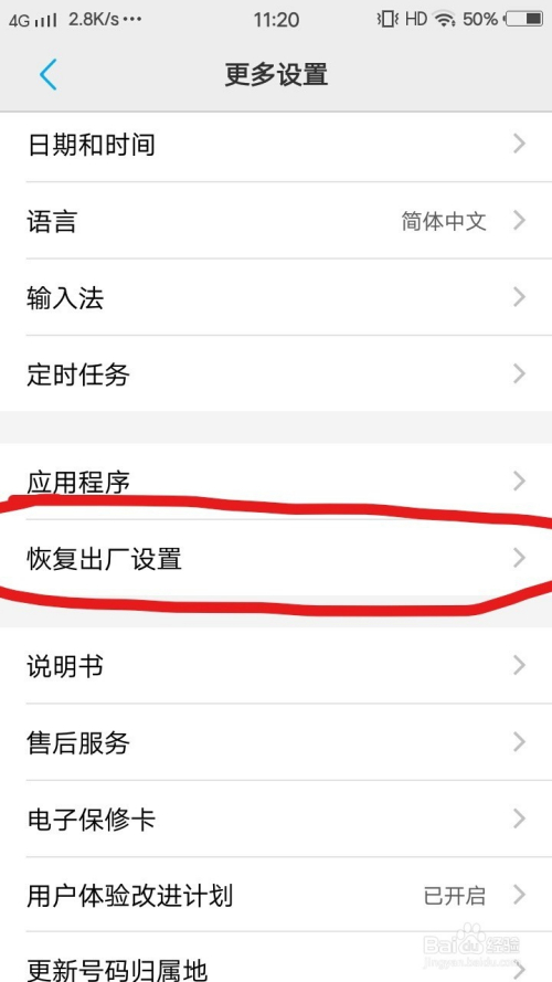在更多设置界面,点击恢复出厂设置