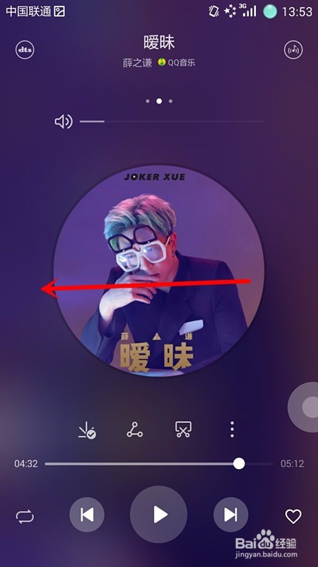 此时,手机页面进入音乐播放页面,我们用手指在屏幕上向左滑动;