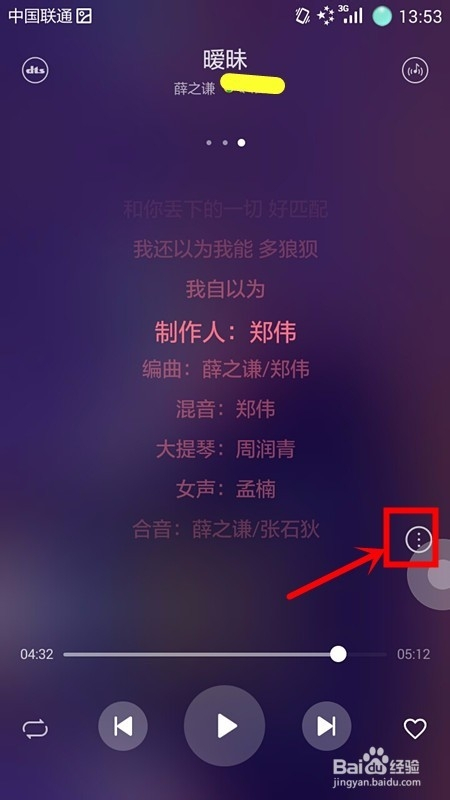 此时手机页面为歌词界面,我们点击选择页面右侧的“三点圆圈”图标;