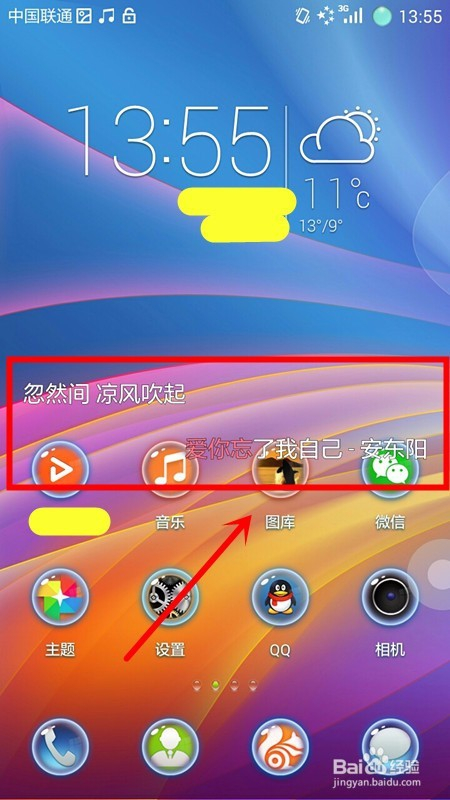 将桌面歌词打开后,当我们返回手机桌面时,我们可以看到歌词已经显示在我们的手机桌面上了。