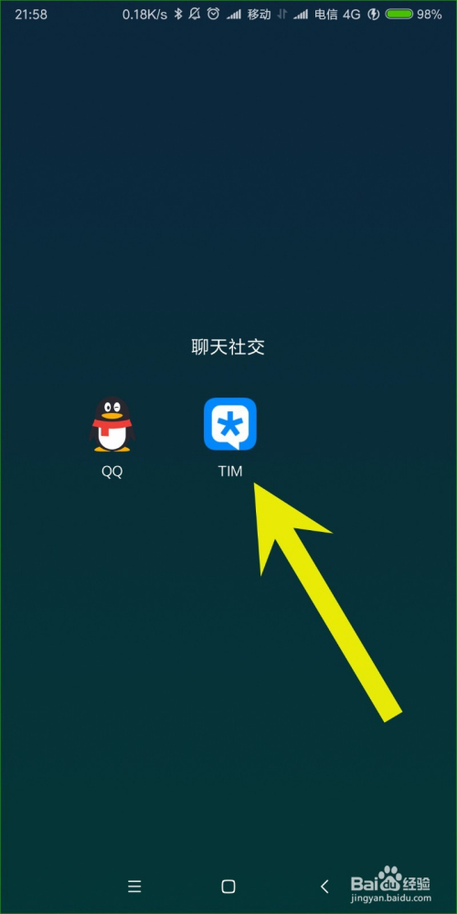 首先在手机上面找到tim,点击打开,如下图所示。