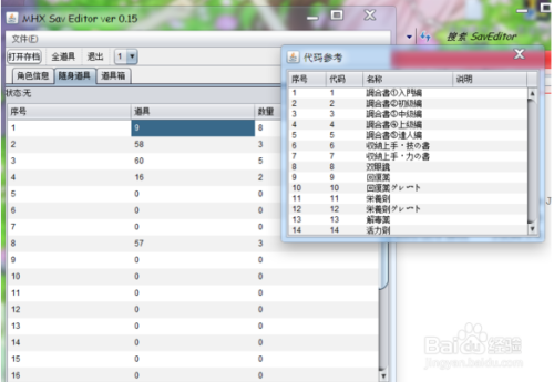 打开后可以直接进入修改,不过这次用数字代替了名称,不过点击一下可以打开代码参考列表,找到你需要修改的物品代码。