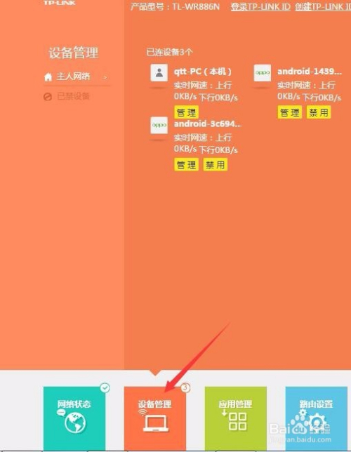 点击设备管理,进入到设备管理页面,这里显示着连接网络的设备