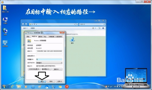 然后,再在快捷方式→目标栏中输入计算机路径(复制、粘贴不会出错):