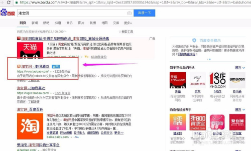 打开浏览器,输入“淘宝网”,进行搜索,如图所示,找到官网处,选择单击